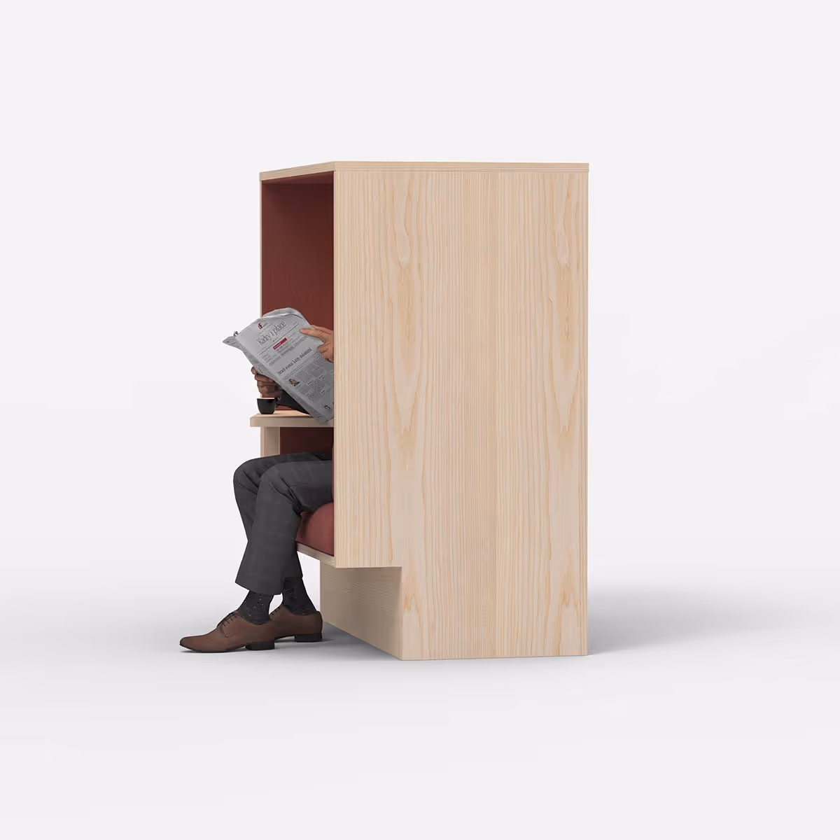As the name implies, Mute focus is a place to have a moment of concentration. Together or alone. The serie has grown over the years andtoday it consists of a large number of different variations. All quiet and all dedicated to concentration. Mute Focus is available with and without roof. With roof the outside is veneered and without roof it is fully upholstered.